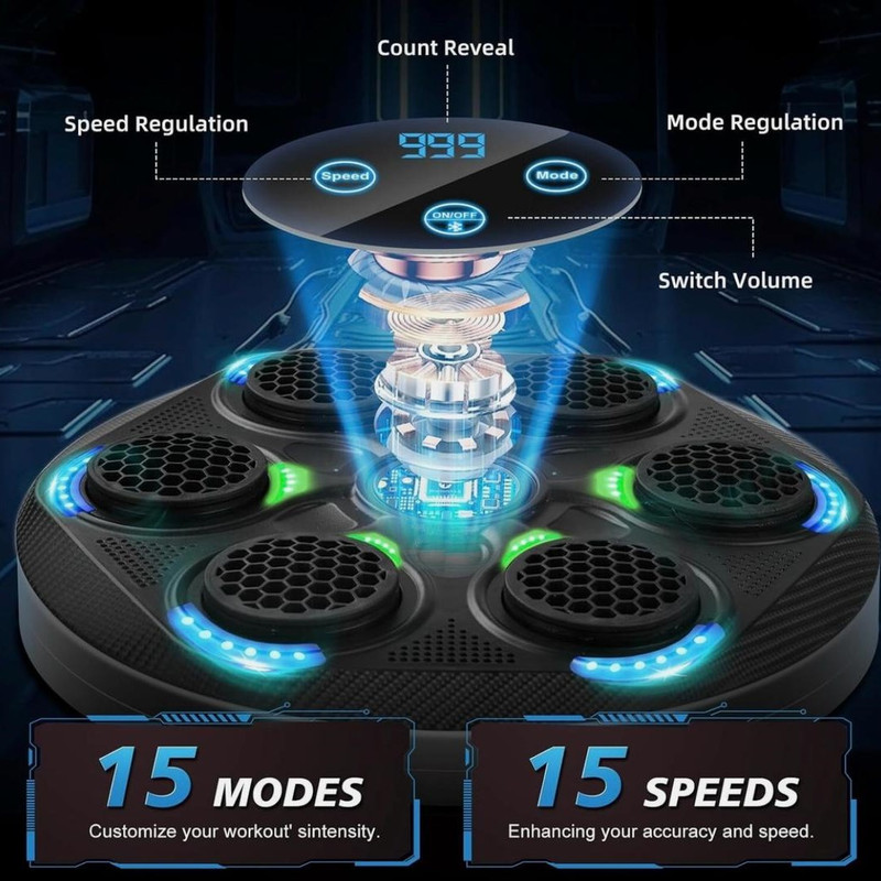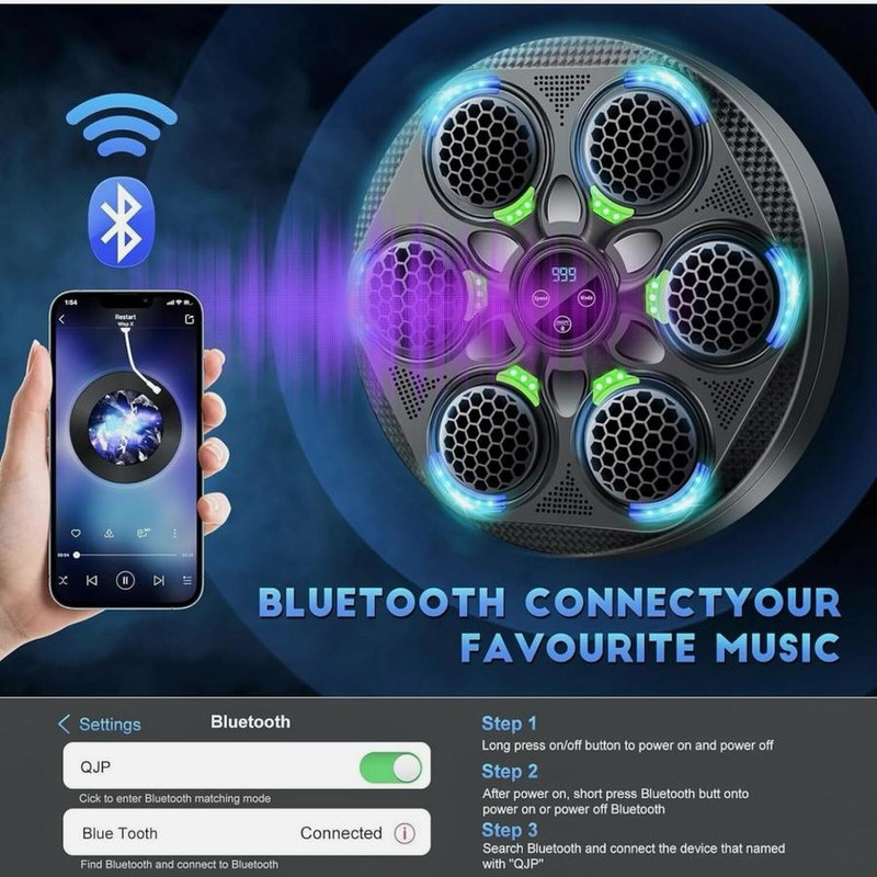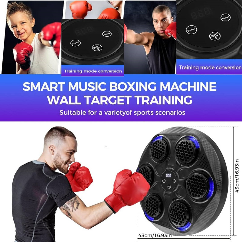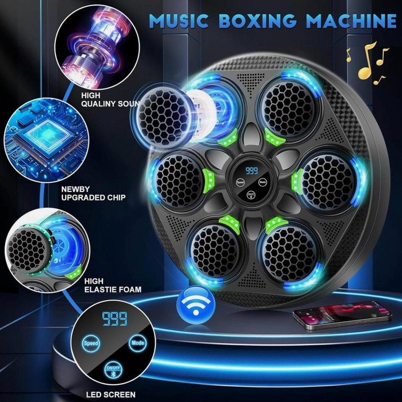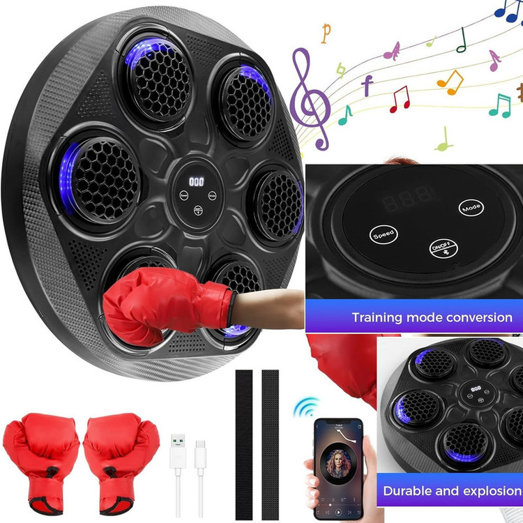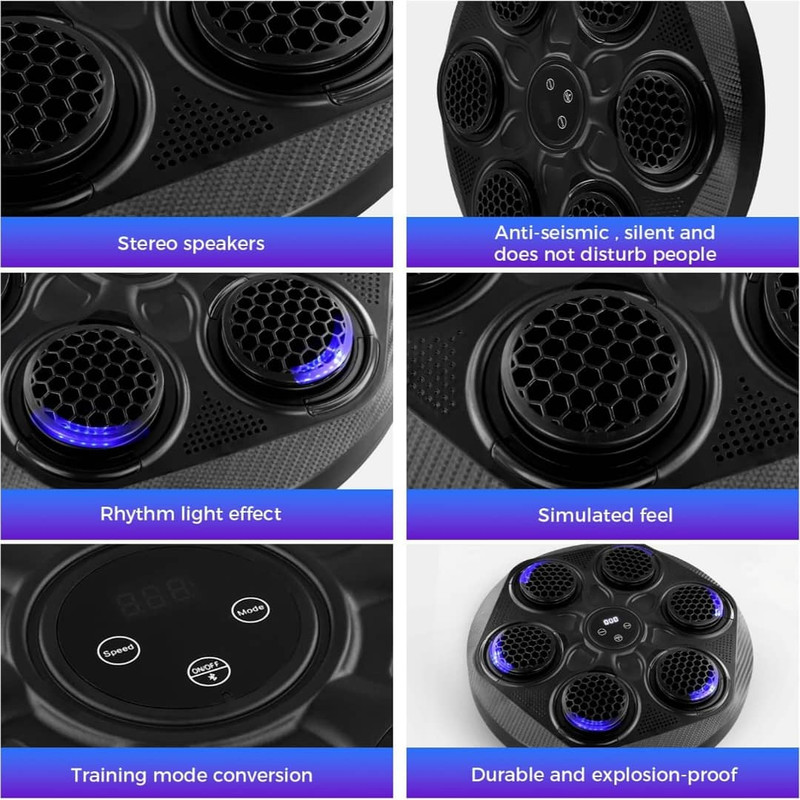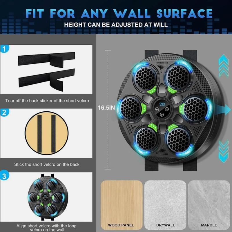 نصب آسان و چسبی روی دیوار اتصال از طریق بلوتوث ضربه شمار و قابلیت تنظیم سرعت چراغ LED دارای حسگر ضربه مناسل برای تمامی سنین دستکش همراه