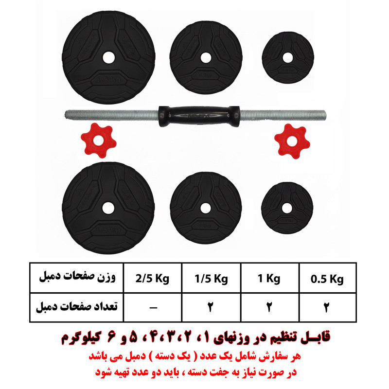 وزن هر دمبل: 6 کیلوگرم
