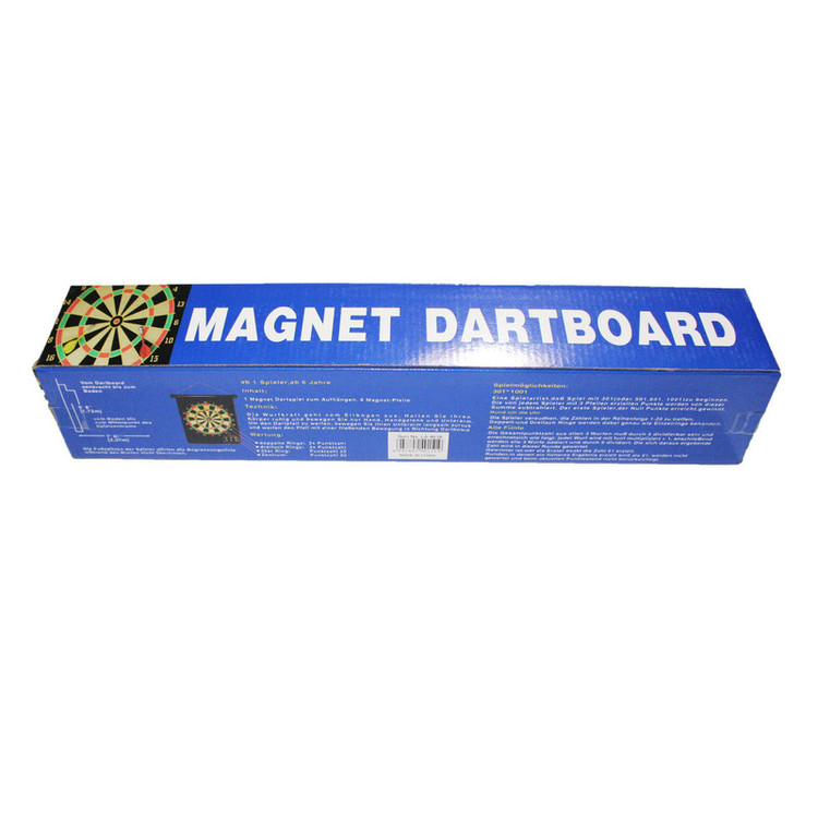 ابعاد دارت : 50x40x1 ابعاد بسته بندی : 47x7x7 دارای 6 عدد تیر در دو رنگ قرمز و زرد میباشد وزن حدودی هر تیر 6 گرم میباشد دارت دو طرفه با کیفیت بسیار عالی مزیت دارت مغناطیسی این است که هیچ گونه خطری برای کودکان و اطراف محیطی که نصب می شود ندارد