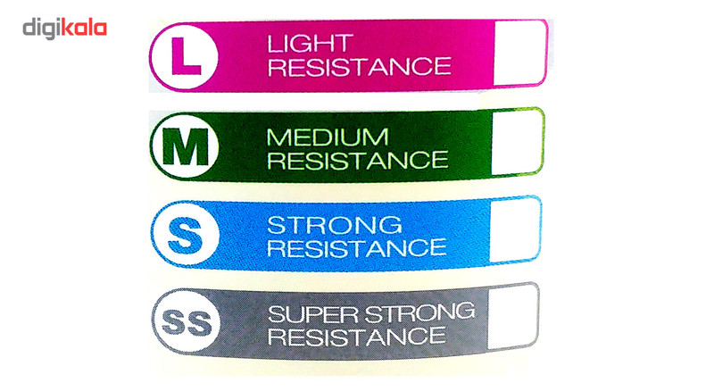 هر رنگ، قدرت استقامتی و قیمتی متفاوت دارد که به شرح ذیل است : صورتی Light = L سبز Medium = M آبی Strong = S خاکستری Super strong = XXL