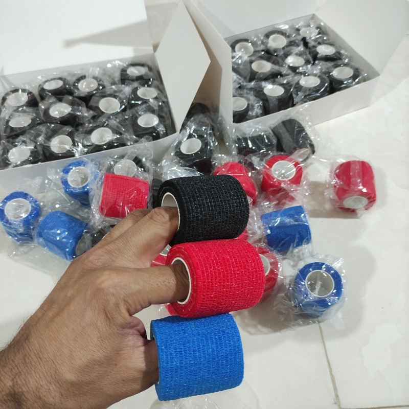 بانداژ خود چسب بافت الاستیکی , این مدل بانداژ در حالت ایستا 2.5 متر طول دارد و عرض آن 5 سانتی متر می باشد , کاربرد مناسب محافظت از اندام های استخوانی ضربه دیده مانند انگشتان , مچ , آرنج و ساق پا می باشد . با پیچاندن بانداژ به دور اندام نیازی به چسب اضافی دیگری جهت فیکس کردن نمی باشد و در واقع بانداژ خاصیت چسبندگی به خودش را دارد.