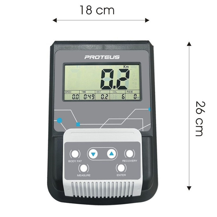 سرعت، مسافت، کالری، زمان، ضربان قلب , ODO Meter ، BODY FAT و RECOVERY رانمایش میدهد