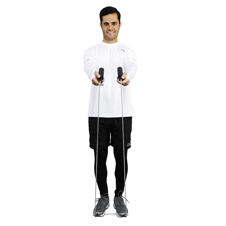 - جنس طناب کابلی با روکش پلاستیکی - دسته پلاستیکی با روکش فومی - مکانیسم اتصال بلبرینگی طناب به دسته - طناب زدن راحتتر و سرعتی با این طناب حرفهای - طول طناب با احتساب دسته حدود 320 سانتیمتر یا بیش از 3 متر - قابلیت تنظیم طول طناب یا ارتفاع آن