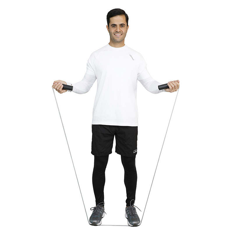 - جنس طناب کابلی با روکش پلاستیکی - دسته پلاستیکی با روکش فومی - مکانیسم اتصال بلبرینگی طناب به دسته - طناب زدن راحتتر و سرعتی با این طناب حرفهای - طول طناب با احتساب دسته حدود 320 سانتیمتر یا بیش از 3 متر - قابلیت تنظیم طول طناب یا ارتفاع آن