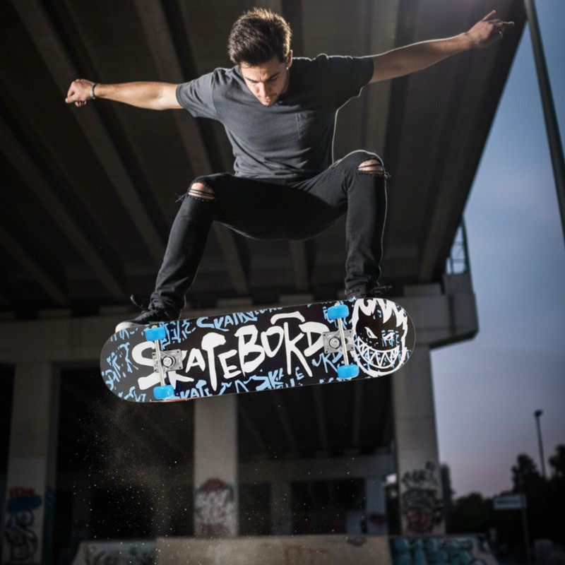 طول:79 سانتیمتر. عرض:20 سانتیمتر. جنس تخته: چوب 7 لایه. قابلیت تحمل وزن تا ۵۰ کیلوگرم. تخته با گریپ ضد لغزش. بوشینگ ها ثابت. اسکیت برد.
